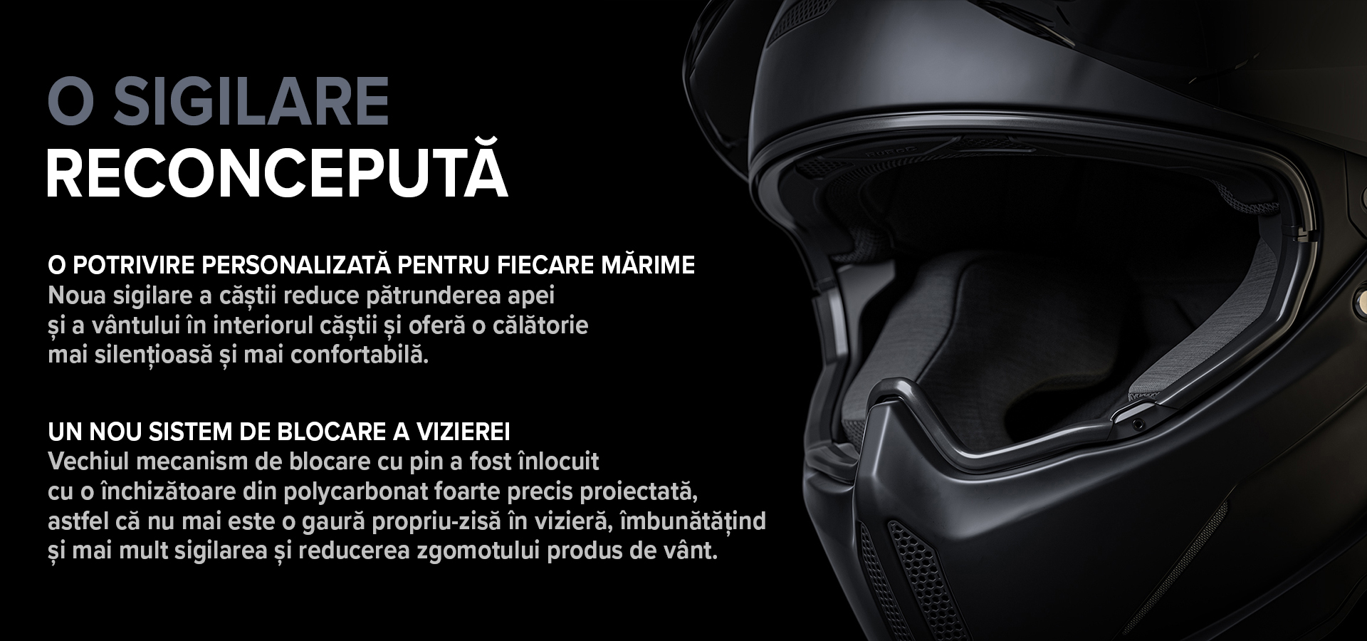 -un mecanism de sigilare reproiectat pentru a minimiza la maxim pătrunderea apei sau a vântului în interiorul căștii