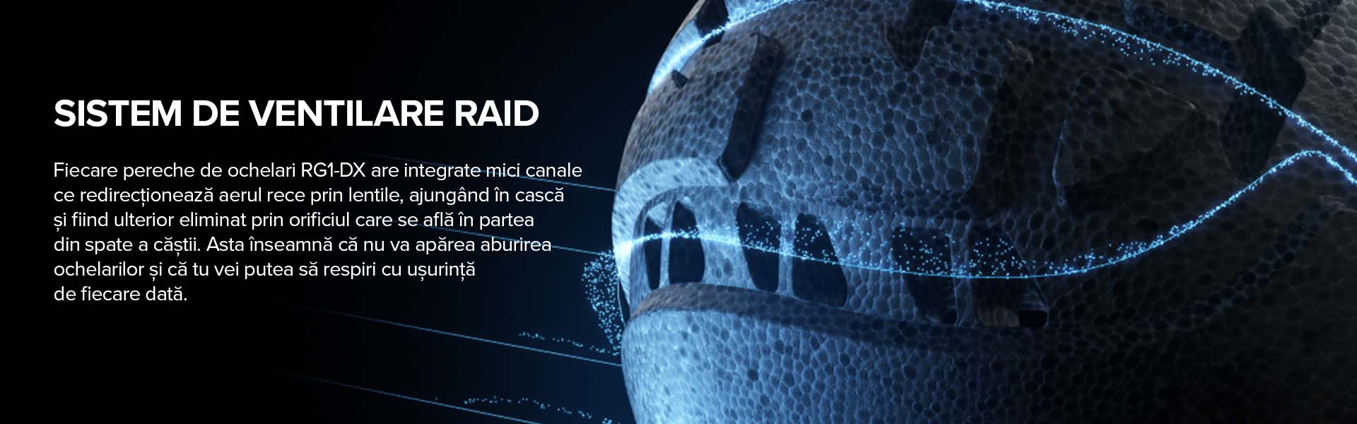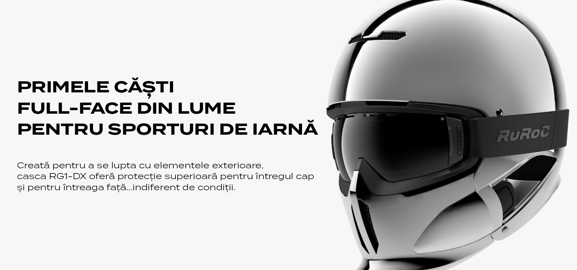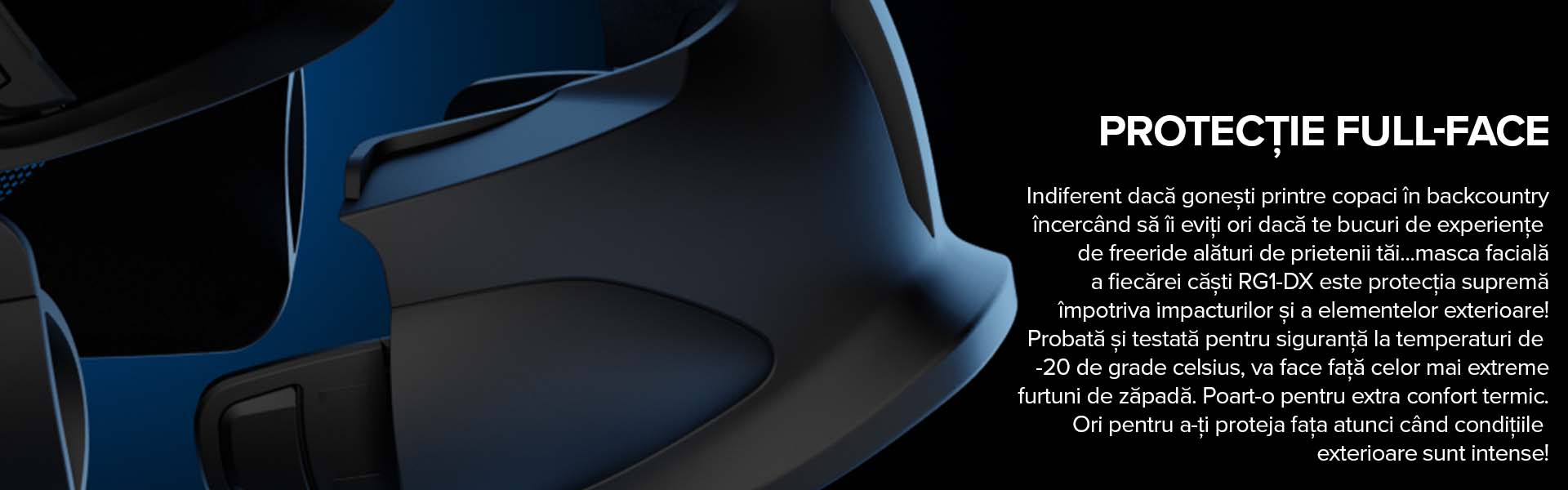 Nascuta pentru a se lupta cu cele mai extreme conditii, muntii reprezinta locul sau de joaca, iar aceasta casca este aici pentru a juca. RG1-DX a fost proiectata pentru a perturba. Pentru a inova si pentru a iesi in evidenta, exprimandu-se zgomotos in timp ce ofera cea mai performanta protectie pentru rideri. Neamestecandu-se in multime, RG1-DX se grabeste sa atace partiile, cu atat mai mult apres-urile, traind viata la maxim. Mascheaza-te si patrunde pe un nou taram, protejat de elementele exterioare si transformat intr-o masina de maruntit partiile, devorand toata exaltarea. Acum hai sa ne dam!